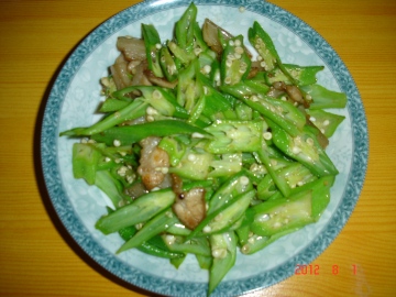 第二种:炒菜菜谱咸肉片炒秋葵做法