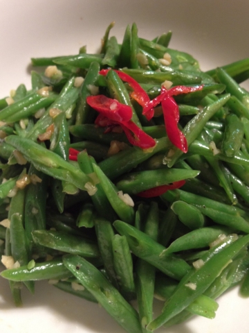 四季豆,蒜,生辣椒,食用油,鹽,米酒
