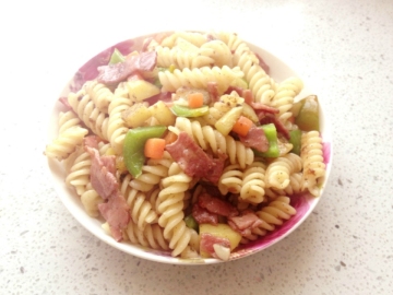 第一种:炒菜菜谱黑胡椒培根土豆炒意面做法