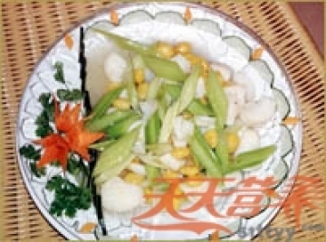 主料:白果(鲜)150克,百合(干)150克,西芹50克,