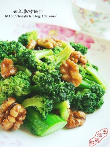第二种:炒菜菜谱西兰花炒桃仁做法