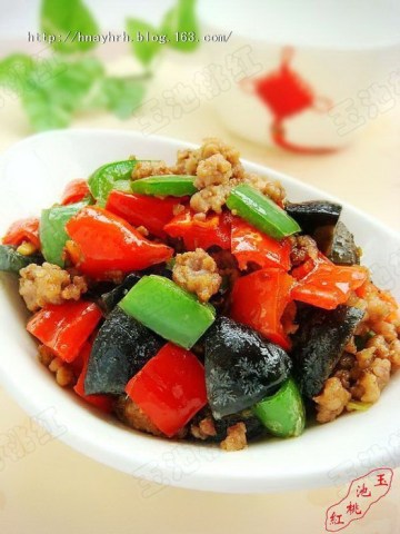 相关菜谱名称推荐:双椒肉沫炒皮蛋,双椒肉沫炒皮蛋,双椒炒皮蛋,虾米肉沫炒秋茄