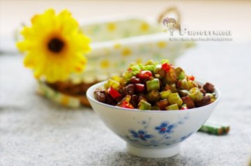 1.将四季豆切成小丁,放入油锅中煸炒至软;