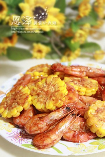 大虾,番茄沙司(或番茄酱),玉米,白糖,料酒,盐,葱花