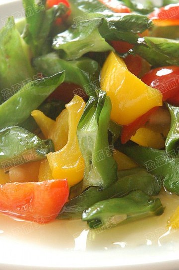 四角豆,红甜椒,黄甜椒(也可用较辣的红尖椒来炒),盐,鸡粉