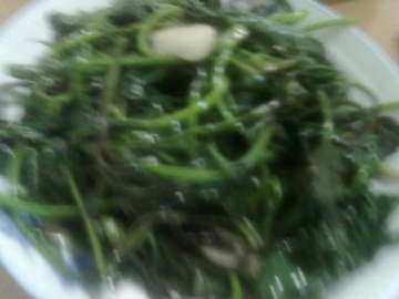 红薯笊2把(就是红薯藤上的杆子,我也不知道学名叫什么),蒜末少许,盐,油