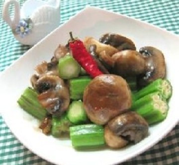 第一种:炒菜菜谱小蘑菇炒秋葵做法