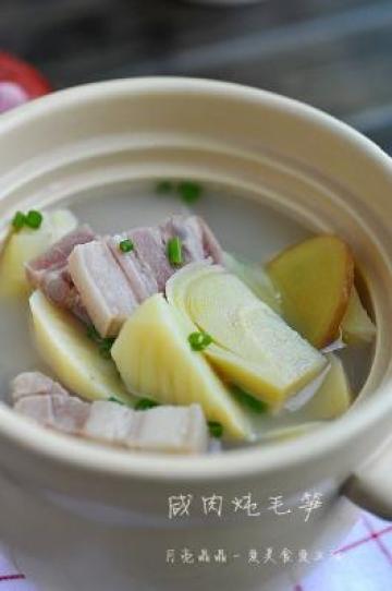 1.咸肉洗净。毛笋剥壳
