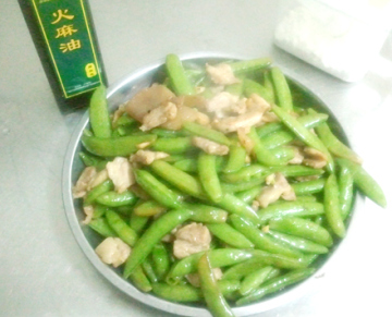 第二种:炒菜菜谱大荚荷兰豆炒肉--用火麻油炒菜做法