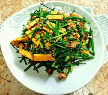 第一种:炒菜菜谱豆干肉碎炒韭菜花做法