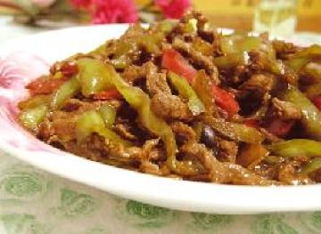 主料:牛肉300克,青椒200克,