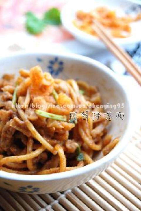 意面150公克,豆芽菜25公克,韭菜20公克,葱花少许,肉燥适量,沙拉油少许,盐少许