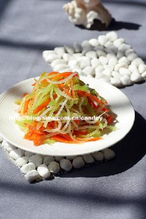 第四种:凉菜菜谱醋拌青笋萝卜丝做法