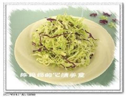 1.将两种甘蓝菜洗净、凉干表面水分,切细丝;