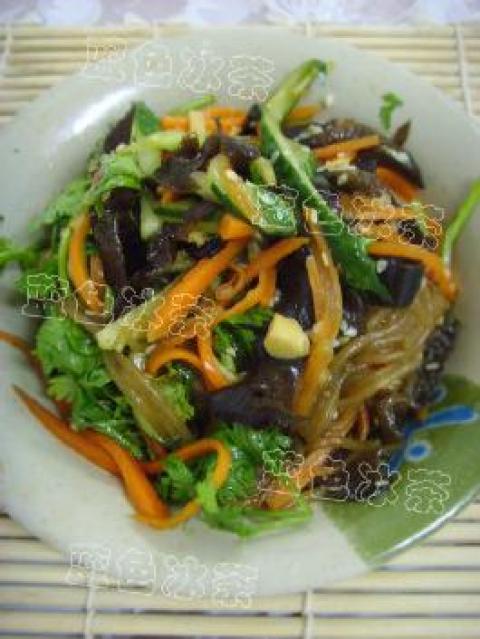粉丝,胡萝卜,黄瓜,木耳,油,盐,味极鲜,糖,蒜泥,白芝麻,香油