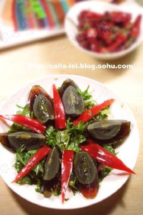 第一种:凉菜菜谱红椒皮蛋拌香菜做法