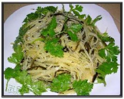第一种:凉菜菜谱炝拌土豆海带丝做法