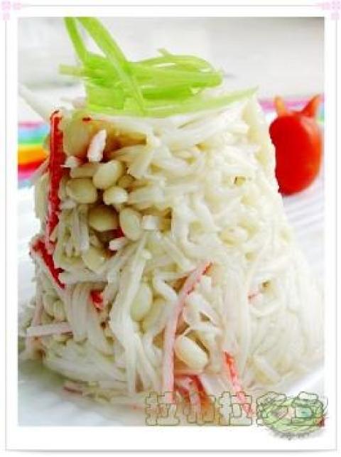 第一种:凉菜菜谱凉拌银针菇蟹棒做法