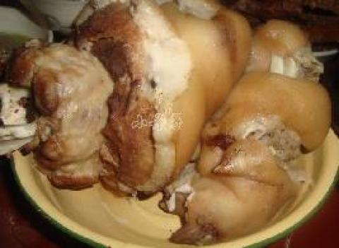 1.将猪耳朵洗干净,用酒和盐腌过,放锅里煮到九成熟的时候捞起。