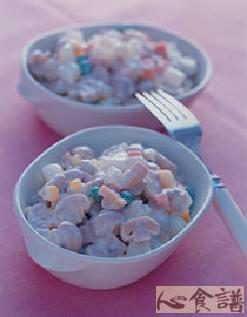 (4)将所有材料放在一起,加入美奶滋搅拌均匀即可食用。