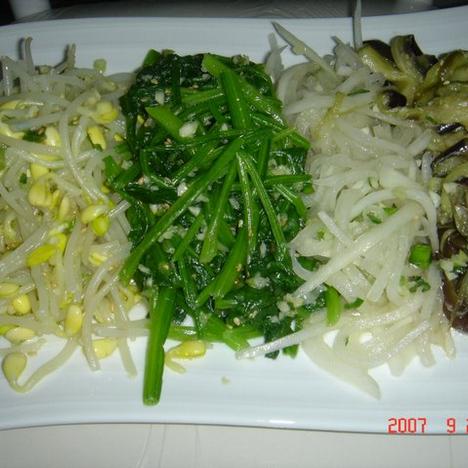 主料:豆芽100克,菠菜100克,茄子2根,白萝卜200克