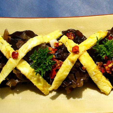 第二种:凉菜菜谱蛋皮拌木耳做法