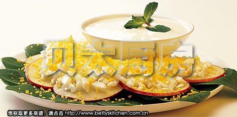4、酱汁做法很简单,把盐水、沙拉酱和酸乳酪调匀,加入沙拉中搅拌便可食用。