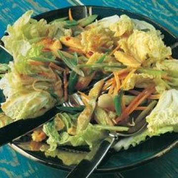 大白菜200克,中等大小芹菜3根,中等大小胡萝卜2根,嫩玉米200克,大葱4根,沙拉酱材料:,莱姆(青柠)2个,椰奶5汤匙,细滑花生酱2汤匙,辣椒酱1/2茶匙,泰国鱼露或淡酱油1茶匙,盐、黑胡椒各少许