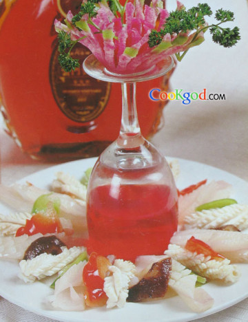 原料可酌加腰片或鸡片,荤素搭配相得益彰。称为腰片双花、鸡片双花。