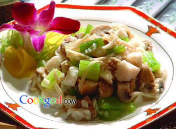 第二种:凉菜菜谱杂菌拌比目鱼丁做法