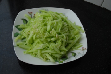 黄瓜去皮,切丝,放蒜,盐,可以了。