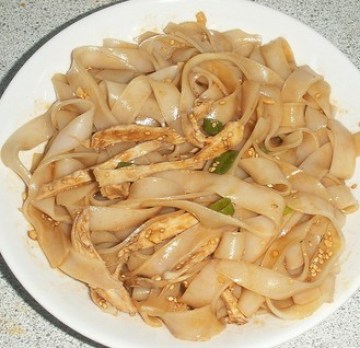 主料:河粉(最好用鲜河粉,可以用面条替代),、煮熟的鸡肉(我用的是去皮去骨的鸡腿肉)
