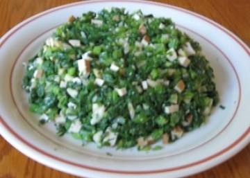 3。将唐芹切碎,攥出水,放入一大碗中。