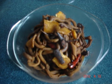 3.加入适量的酱油、白糖、黄酒煮烂,收干加入适味精即可.
