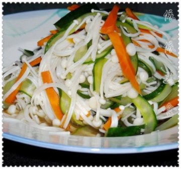 第一种:凉菜菜谱黄瓜丝拌金针菇做法