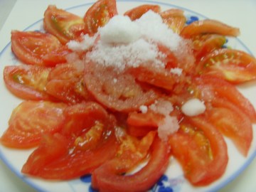 1.西红柿切开撒上白沙糖就ok了!
