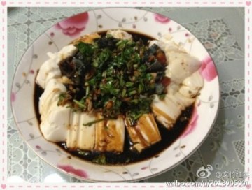 4、料汁浇在豆腐上。ok!