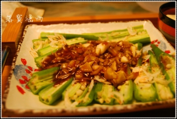 6、将做好的调味汁浇淋在秋葵上即可。