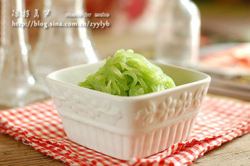 1.千万不要用开水烫,切成丝以后,直接用水龙头冲洗几分钟,是冲哟,这样子冲出来的莴笋丝晶莹硬挺有形,就像餐馆里的一样,然后再拌就可以了。