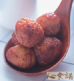 3.将作法1的蛋放入170℃的温油中,炸成金黄色后捞出备用。