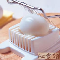5.使用细线或切蛋器切开,此时的蛋称半熟蛋,即是蛋白已凝结但是蛋黄中还有少部份尚呈流黄,这是最好吃的状态。