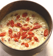 蛋2颗,素高汤300cc,枸杞10公克,香菇丁30公克