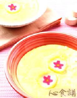 註:蛋液蒸至约八分熟时,可放入鱼板片装饰。