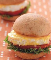 3.将生菜叶、蕃茄片、作法1的煎蛋和起司片放至作法2的香草面包中间即可。