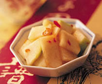 (3)将调味料(2)全部加入大头菜片中搅拌均匀,置于阴凉处腌渍待其入味即可食用,置于冷藏约可保存10天。