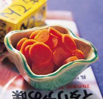 (3)将红萝卜渗出的盐水滤除,加入调味料(2)搅拌至糖完全溶化,即可置于容器中加盖冷藏,冰凉入味后即可食用,冷藏约可保存10天。
