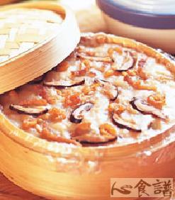 8.将作法5倒入作法7的蒸笼中,装至约八分满后,抹平表面放入蒸锅中以中大火蒸约50分钟即可。