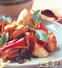 4.放入作法1的筊白笋拌炒,在收汁前,加入九层塔拌炒即可。