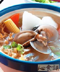 汤底材料:200公克,姜片3片,水250㏄,鲜美露2大匙,火锅料:100公克,白萝卜100公克,红萝卜100公克,玉米笋3颗,豆腐1块,珊瑚草50公克,寒天条1包