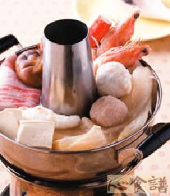 酸白菜白肉火锅的“白肉”指的是猪肉,“吃白肉”是清朝满洲人的风俗,盛行在中国东北,后传入北京,遍及整个大陆。酸白菜白肉火锅将五花肉片切得很薄入锅涮熟,而酸白菜有中和白肉油腻的作用。酸白菜白肉火锅使用生炭火的铜锅,如此才能煮出原味,吃出独特清香,注入以螃蟹为底的高汤,放入以烟台白菜腌制的酸白菜、白肉、冻豆腐等材料,搭配红豆腐乳蘸酱,滋味鲜美清爽,百吃不腻。